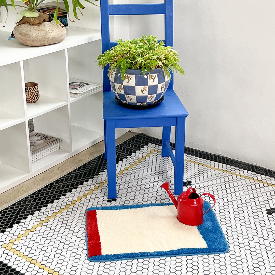 ブルー×レッドの配色が、空間に静かなコントラストをもたらします。