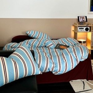 ■名前:ツインストライプ ニットコットン寝具セット(スカイブルー)