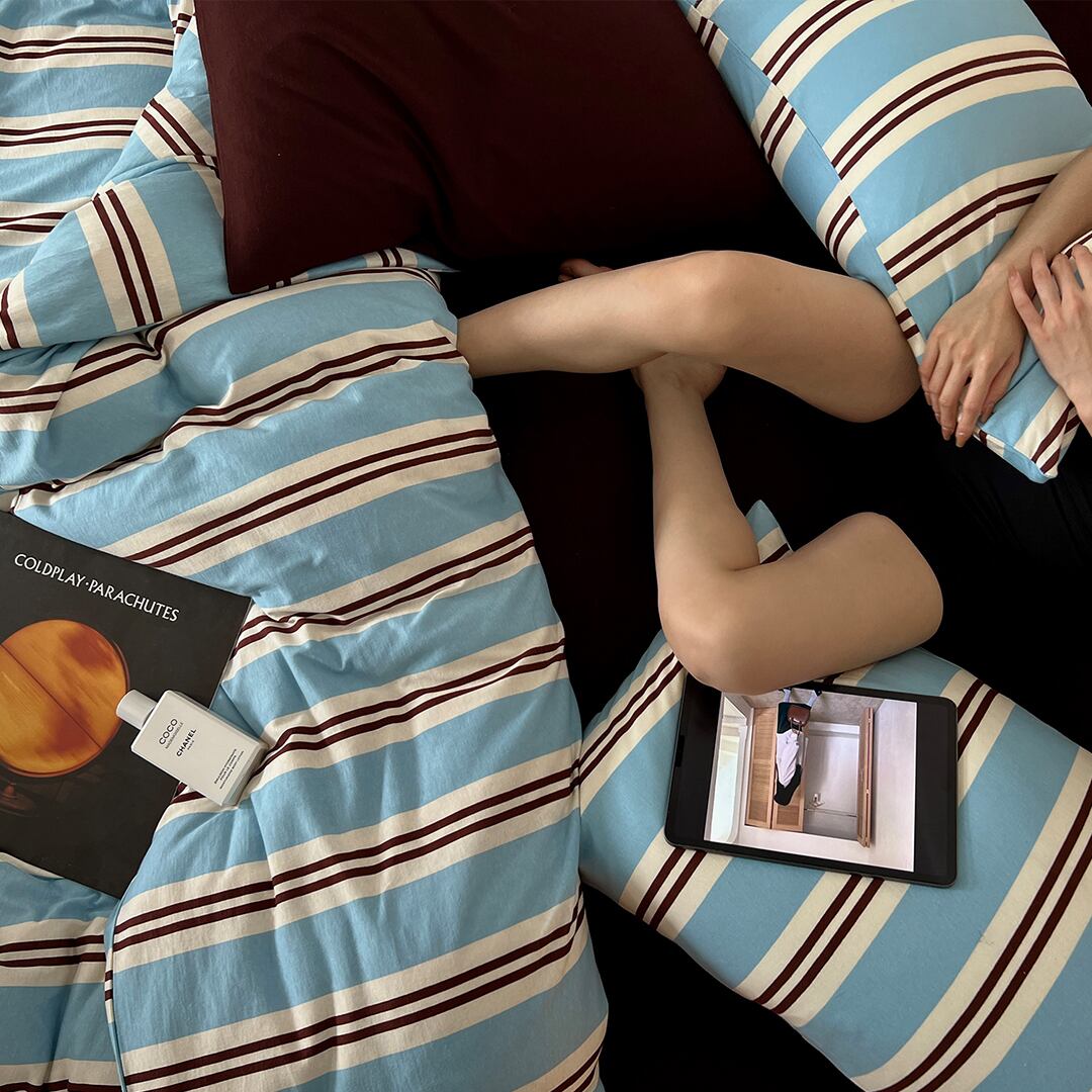 “ツインストライプ”は、洗練されたデザインで、シンプルながらも存在感を放つ寝具セットです。柔らかなコットン素材にこだわり、心地よい肌触りと通気性を実現しました。スカイブルーの色合いが穏やかな空間を演出し、毎日の疲れを癒すお手伝いをします。