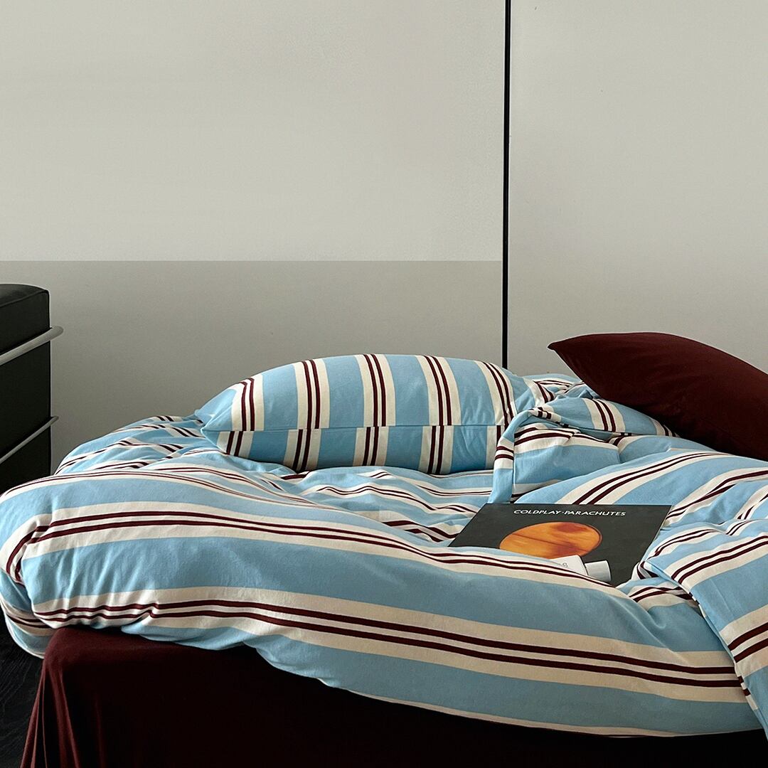 ツインストライプ ニットコットン寝具セットで、リラックスした心地よい睡眠を。