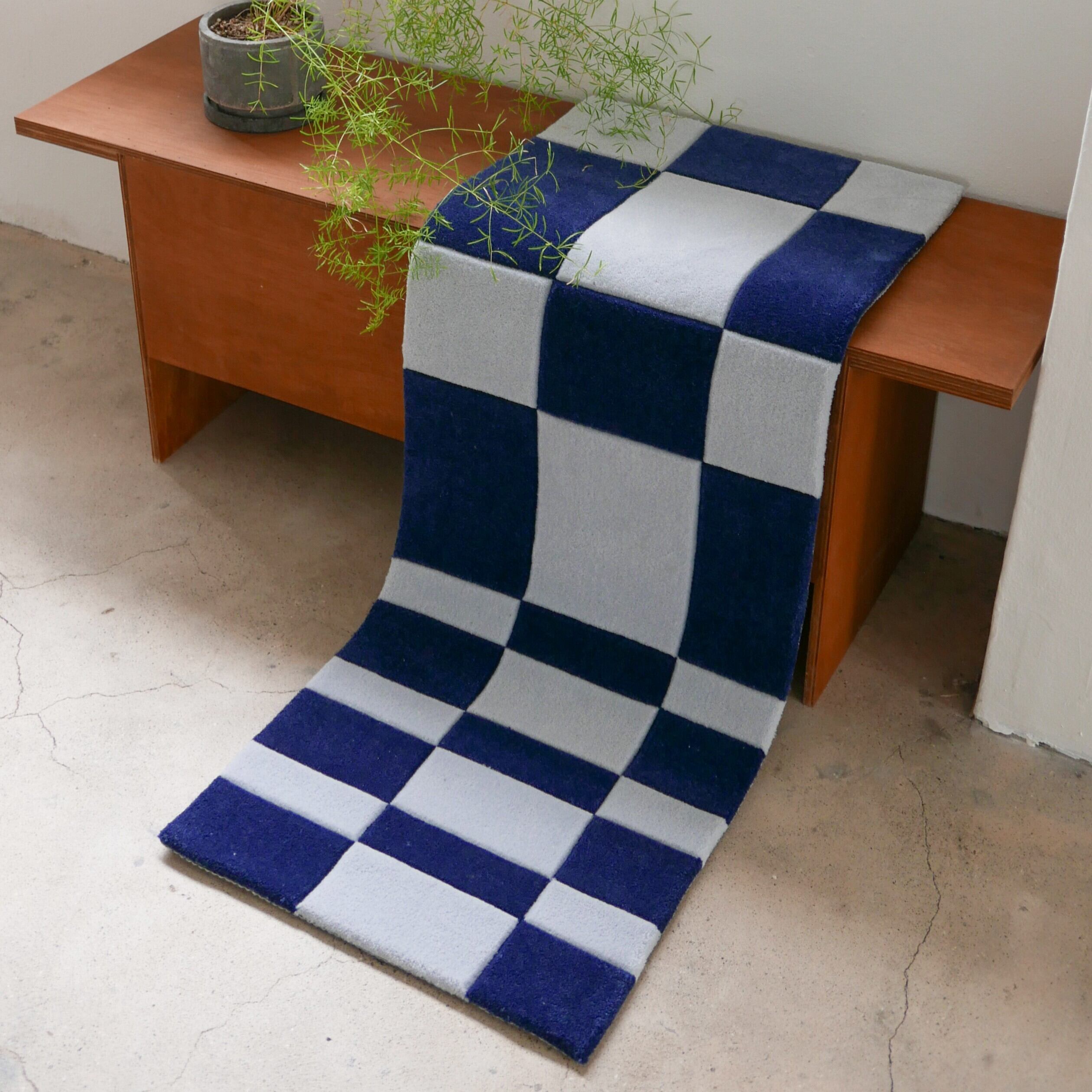 Navy Check(ネイビー チェック)ハンドタフトラグ 45×120