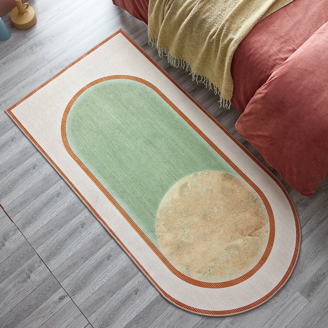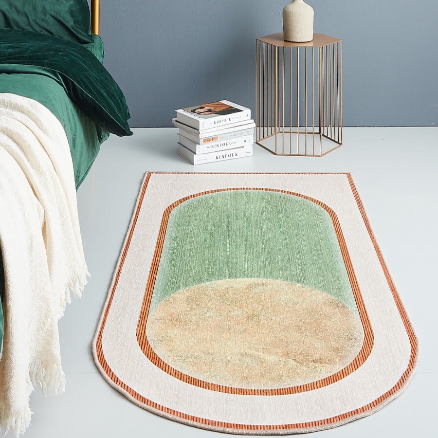 このラグは、素足での触り心地が心地よく、日常のくつろぎ時間にぴったりなアイテムです。小さめサイズなので、リビングやベッドサイド、キッチンなど、様々な場所で活躍します。