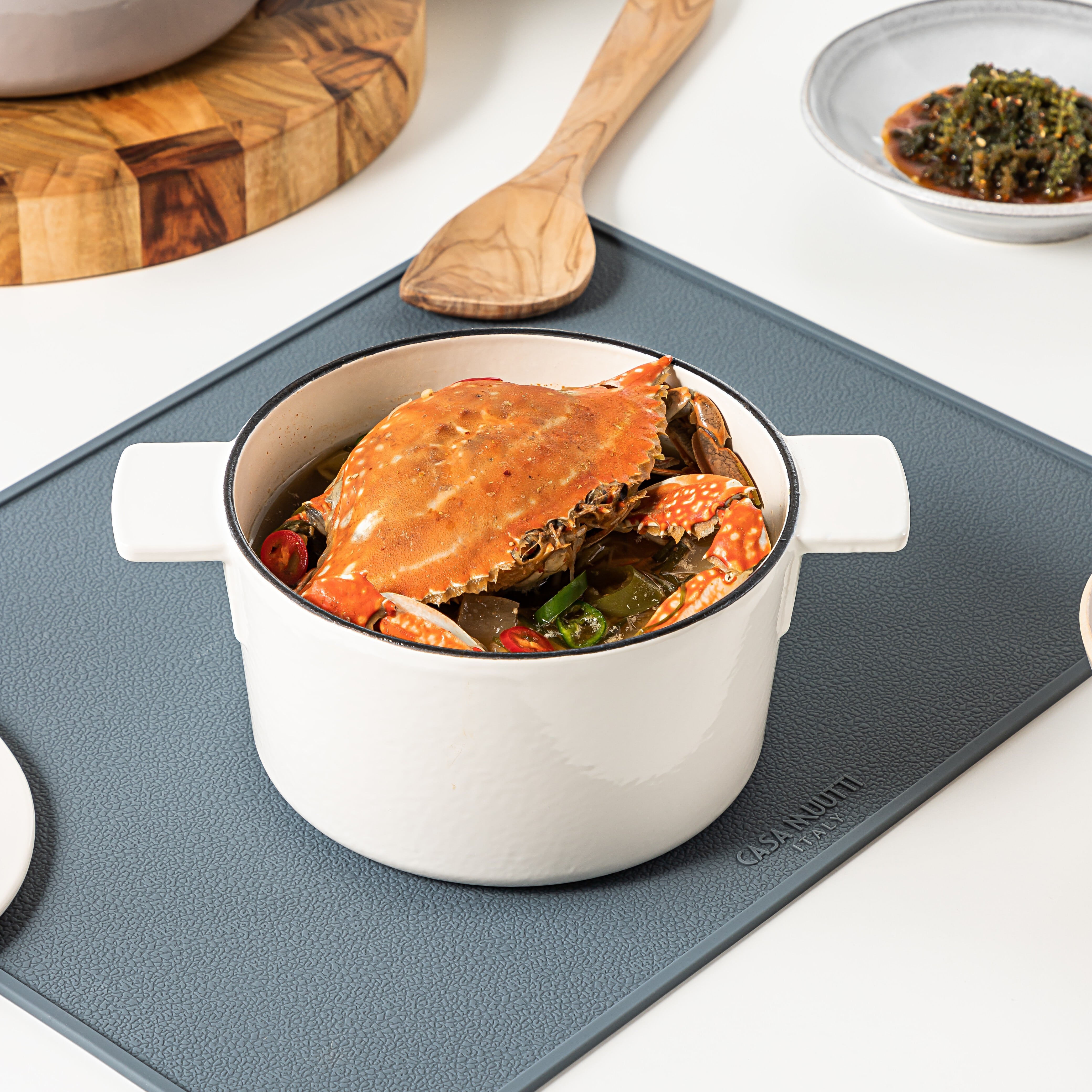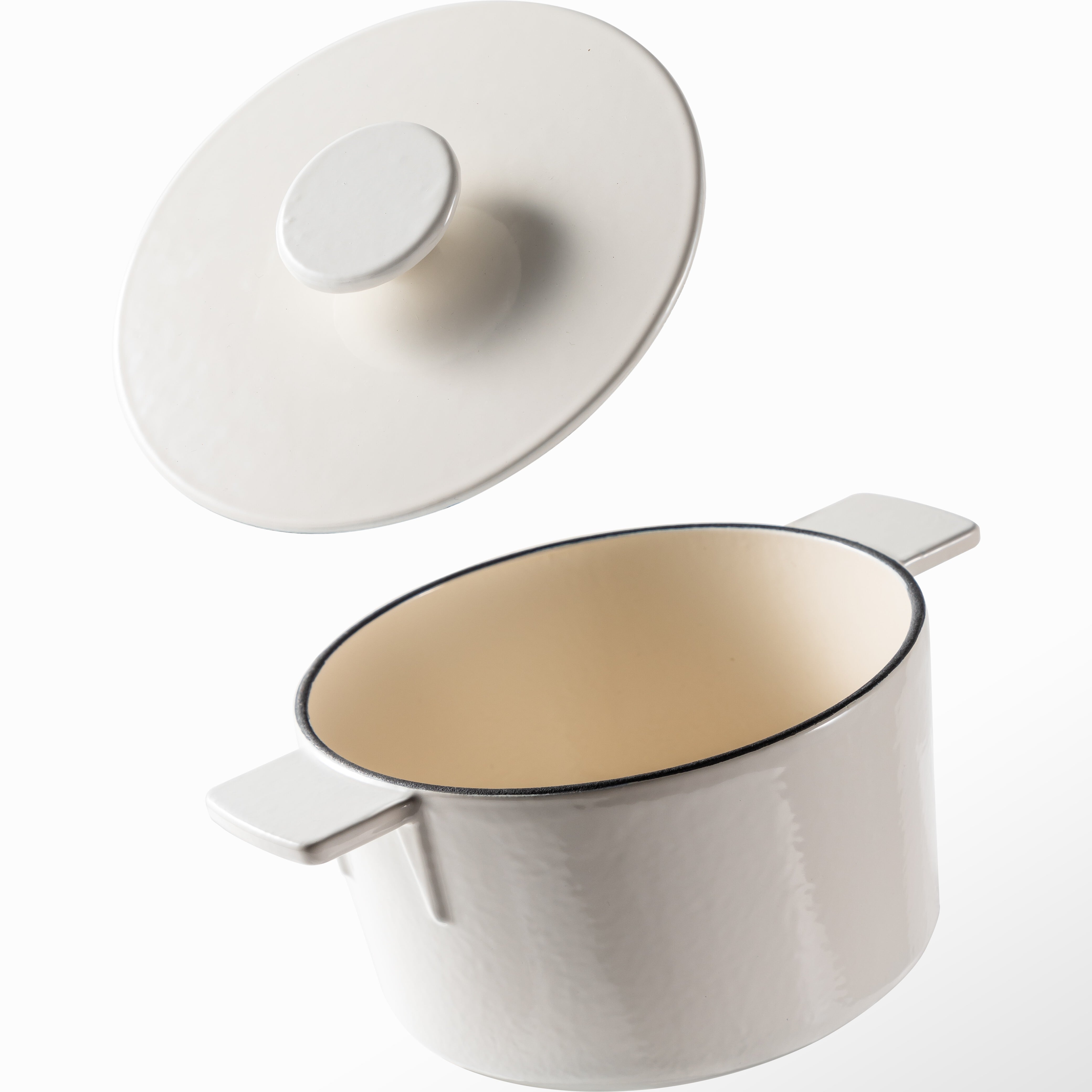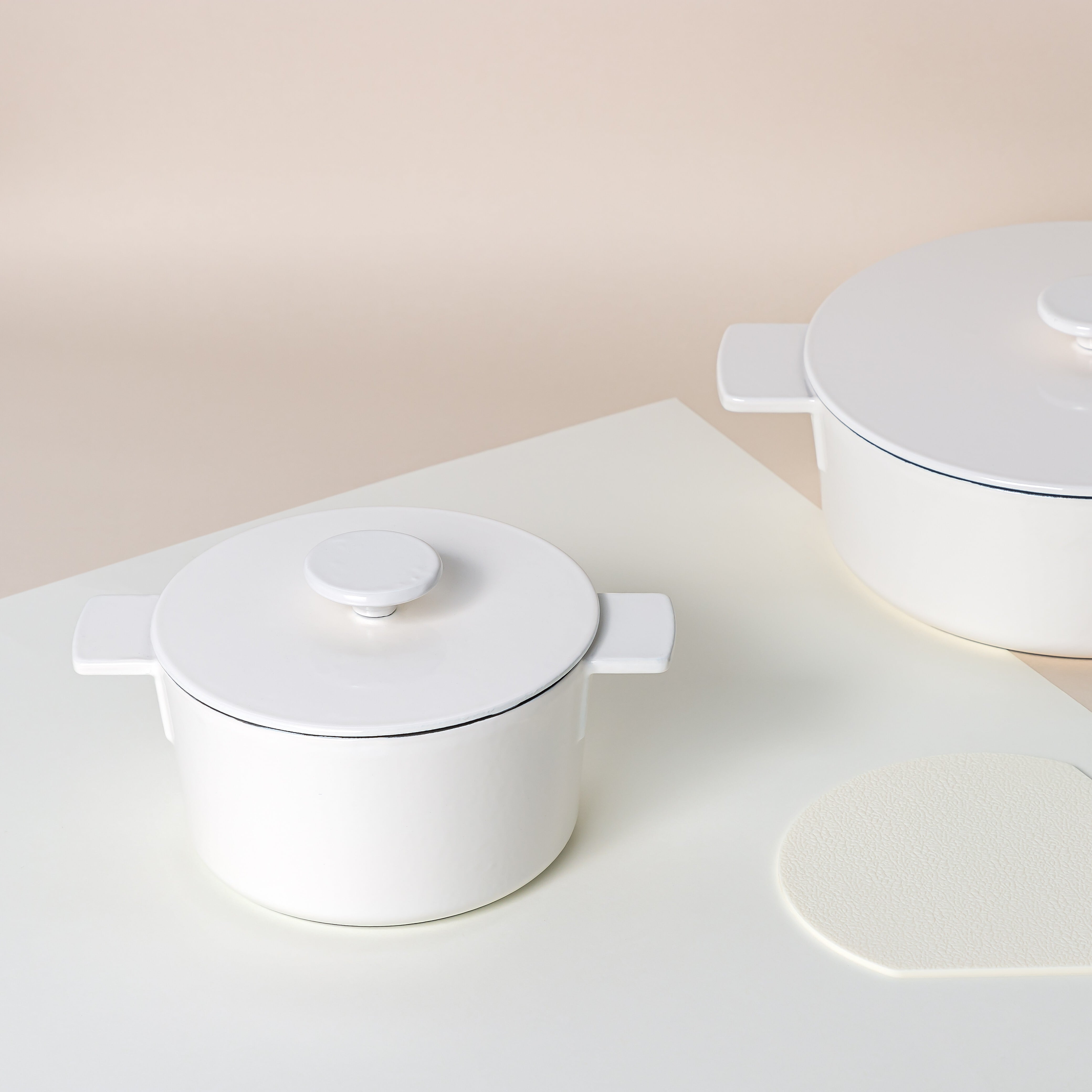 シンプルで洗練されたデザインの鍋は、キッチンのインテリアとしても映えます。ホワイトの美しい光沢が、料理を引き立て、食卓を華やかに演出します。