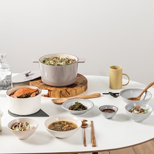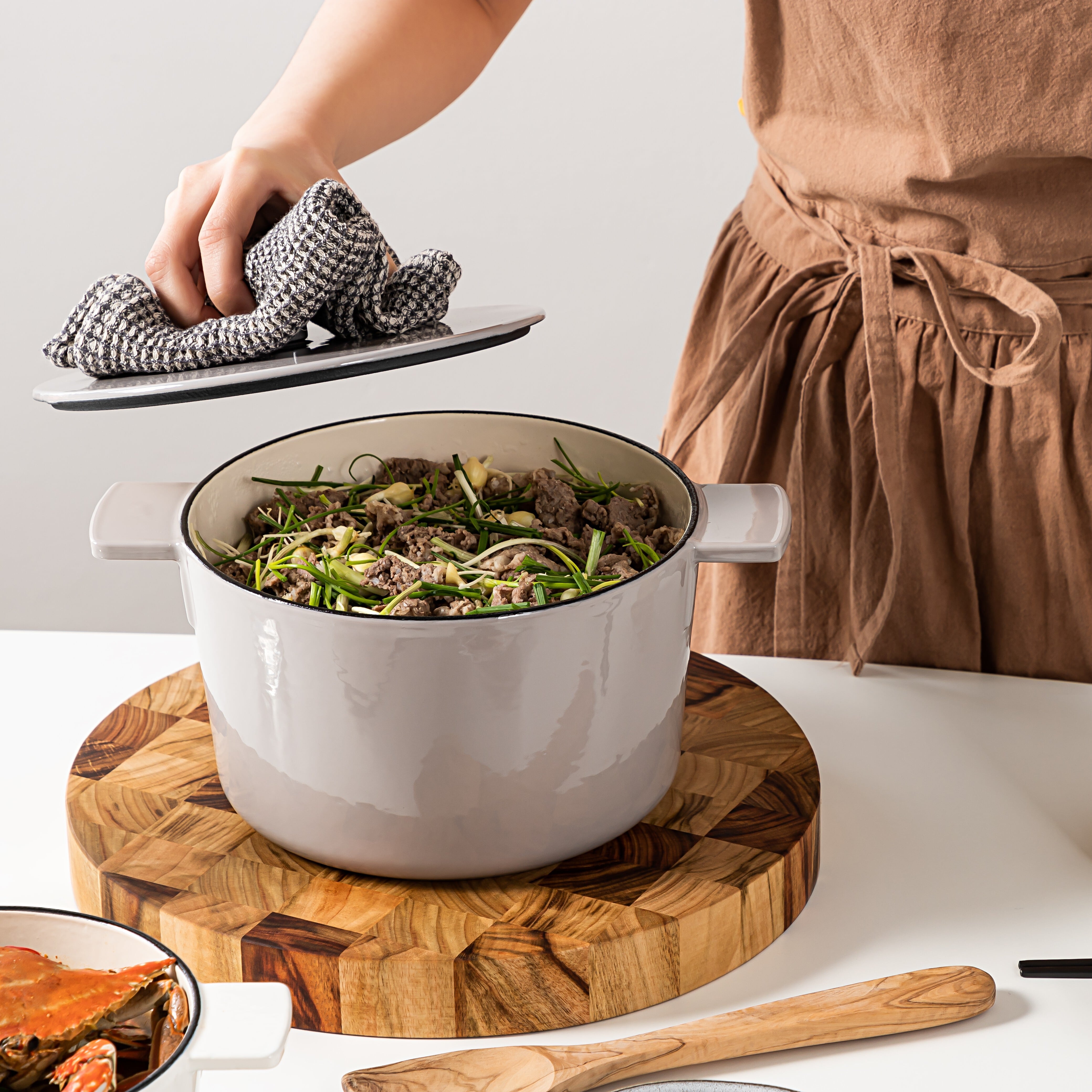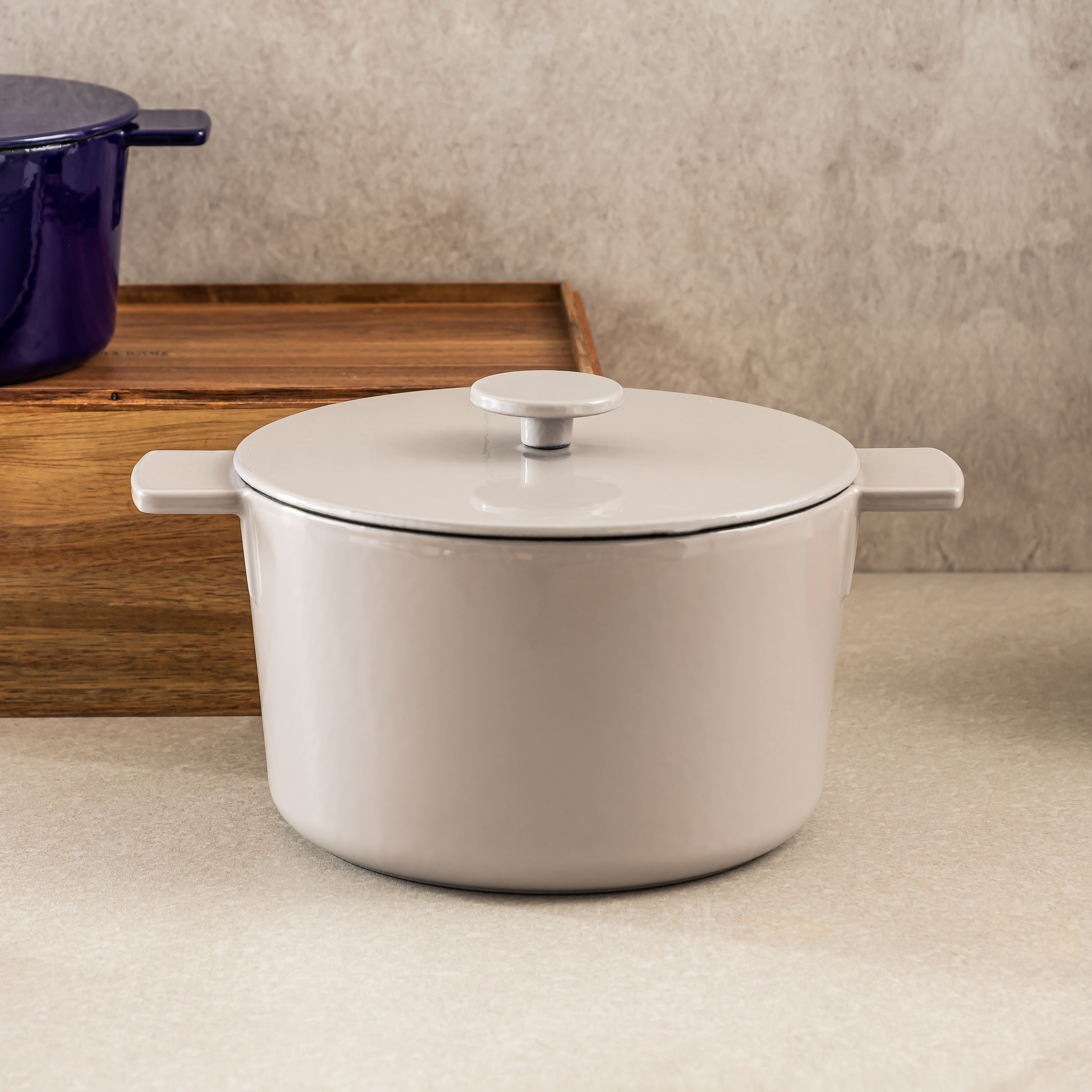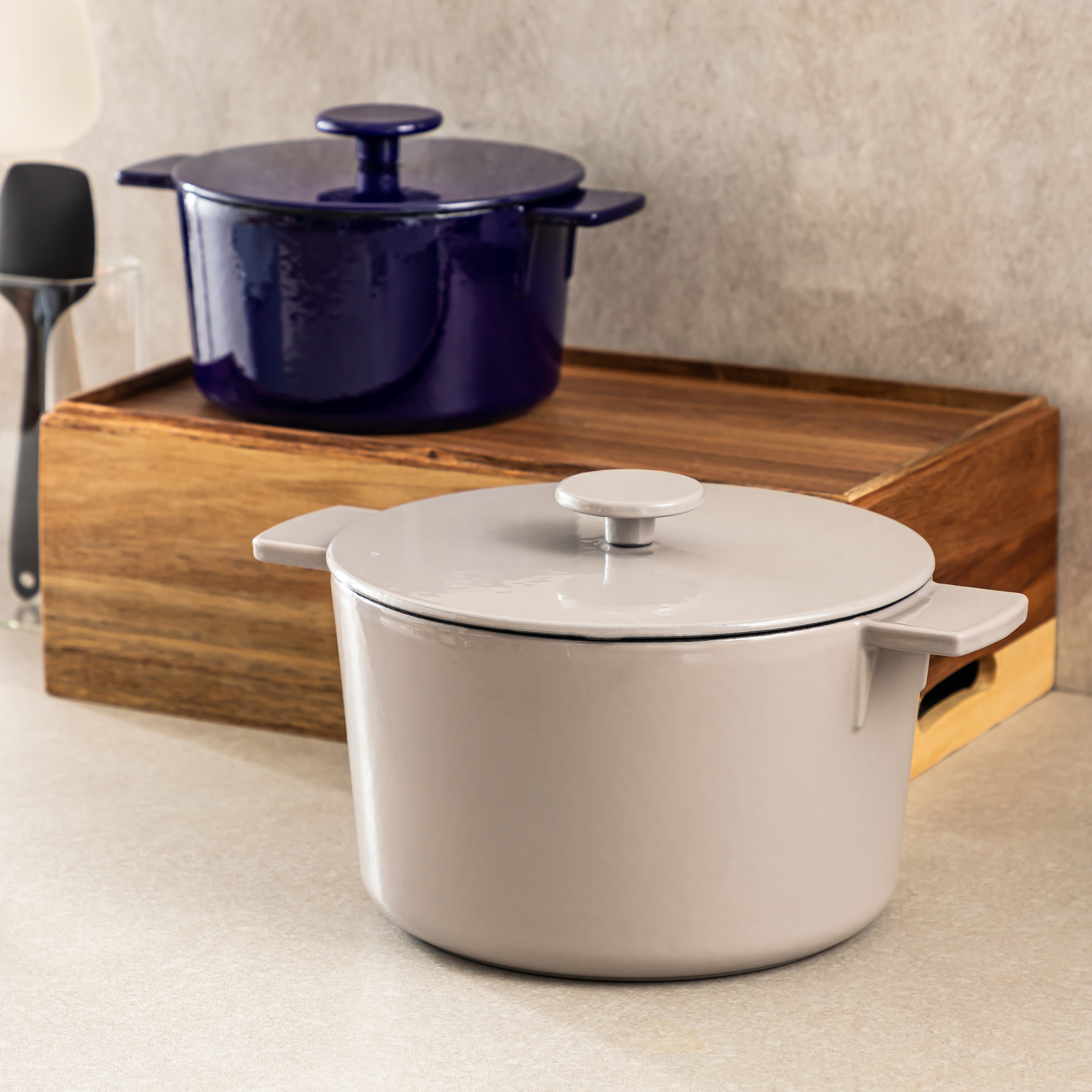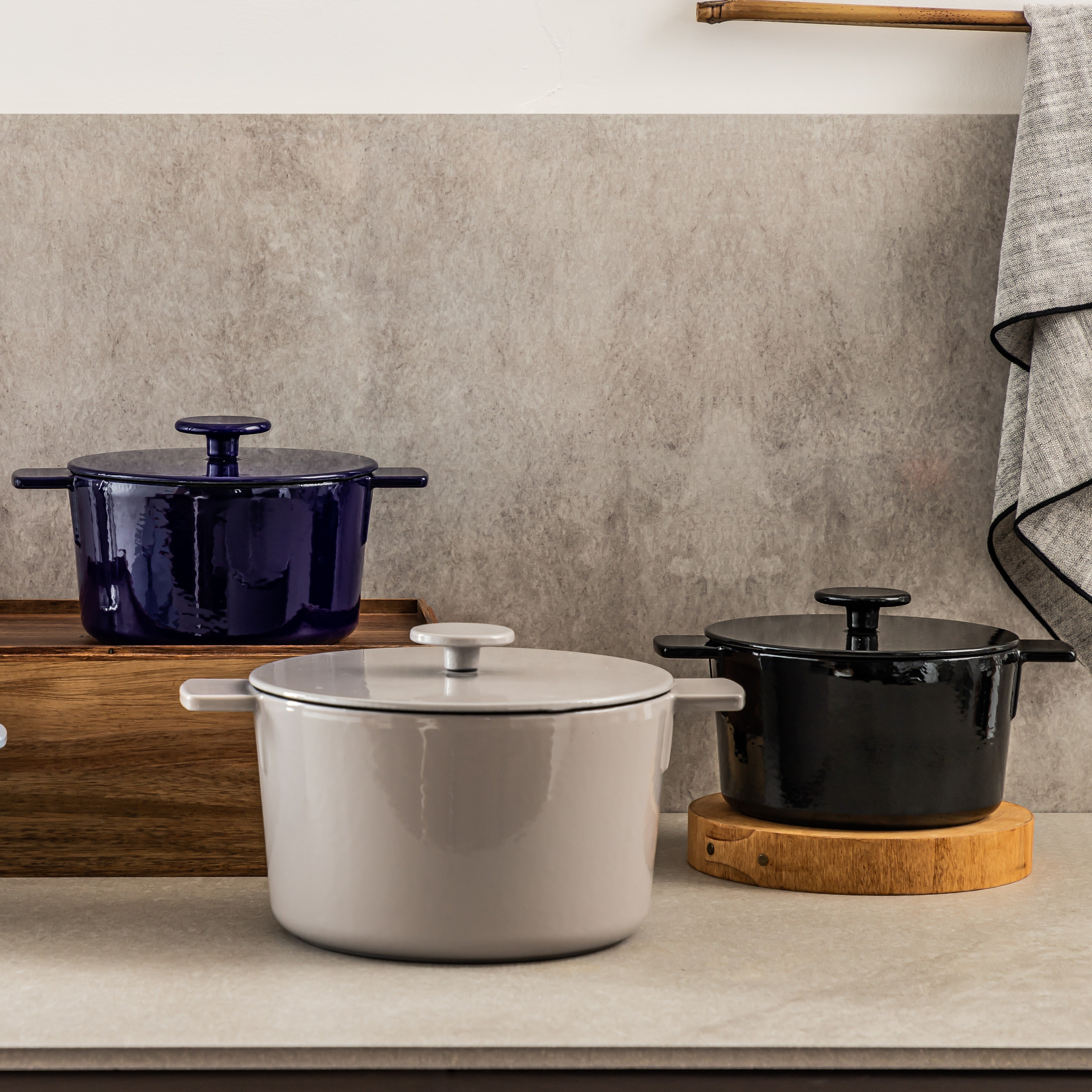 美しいウォームグレーのPrimo 鋳物ホーロー鍋は、20cmのサイズで、家族の食事や多様な料理に最適な一品です。鋳物の持つ優れた熱伝導と蓄熱性が、食材の旨味を引き出し、じんわりと火が通ることで、煮込むほどに深い味わいを楽しめます。また、ホーロー加工が施されているため、こびりつきにくく、後片付けも簡単です。シンプルで洗練されたデザインはキッチンに華やかさを添え、食卓を彩ります。
