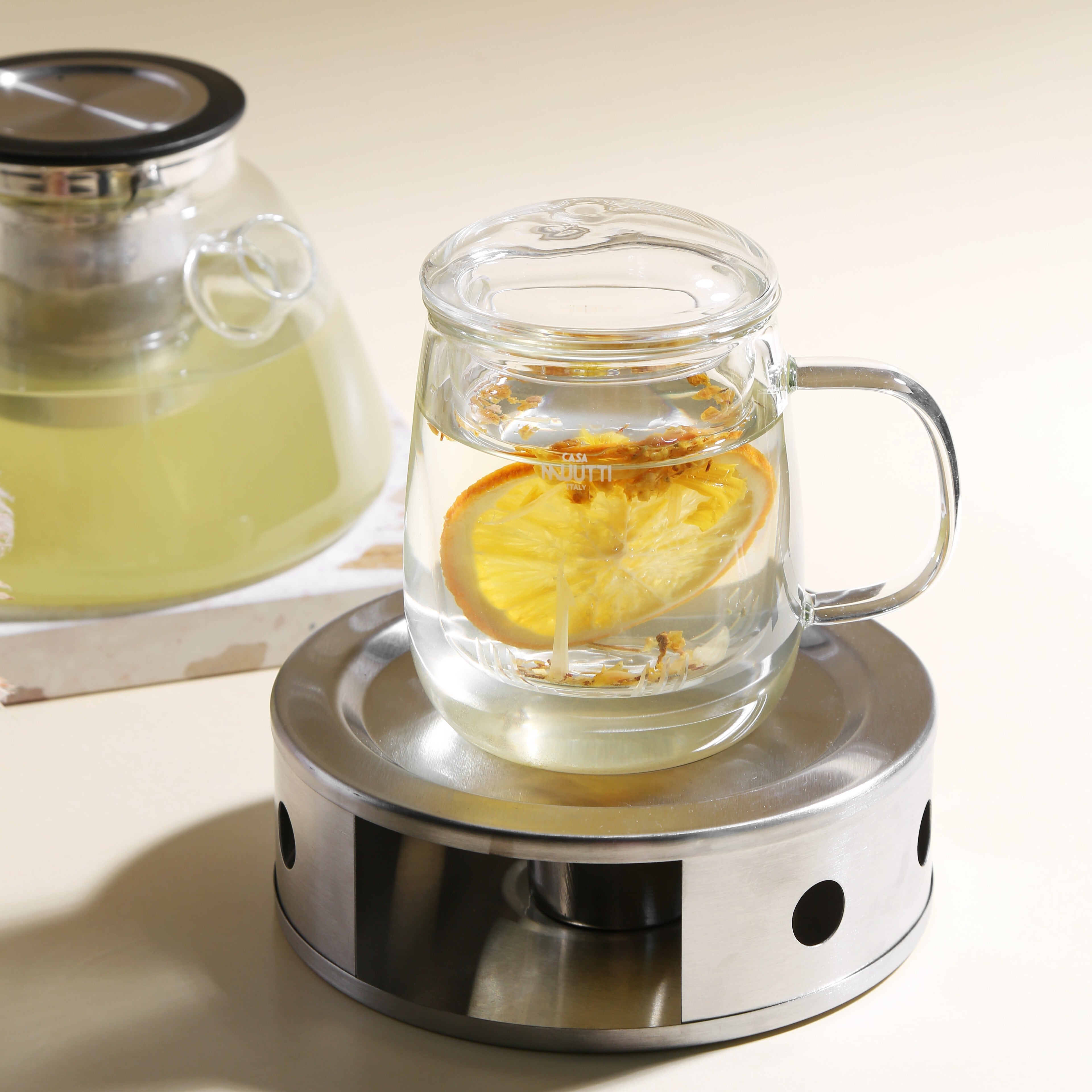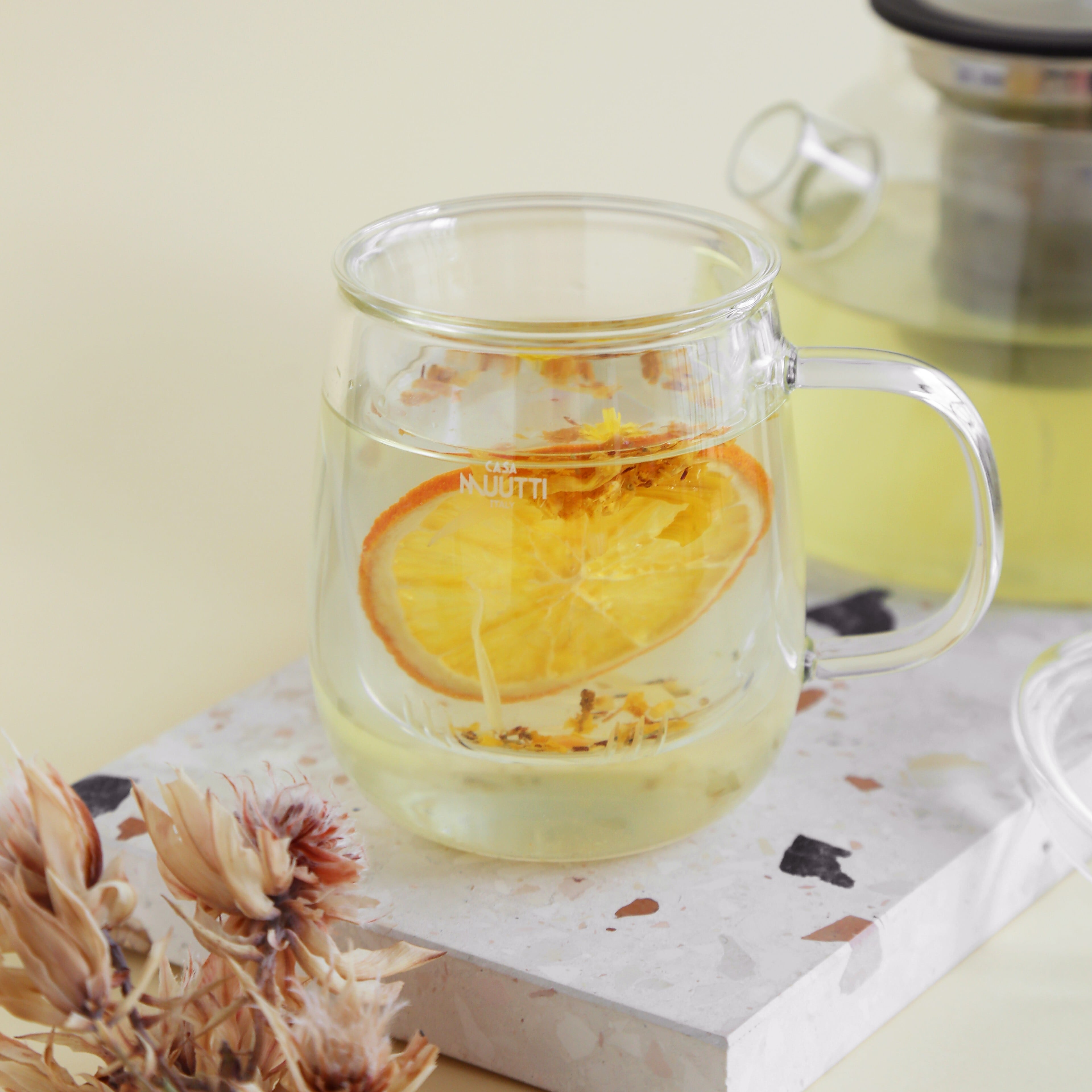 耐熱性に優れた耐熱ガラスを使用しているため、熱いお茶も冷たいお茶でも安心して楽しめます。長時間楽しむことができ、ティータイムをより豊かにしてくれることでしょう。